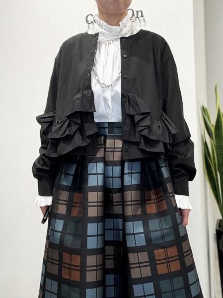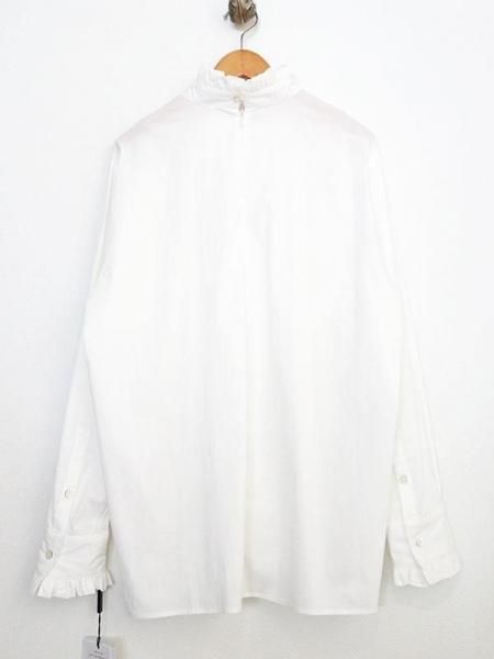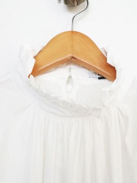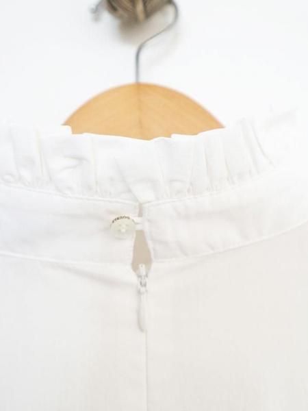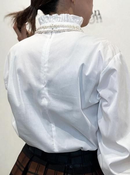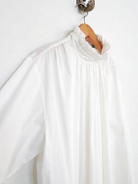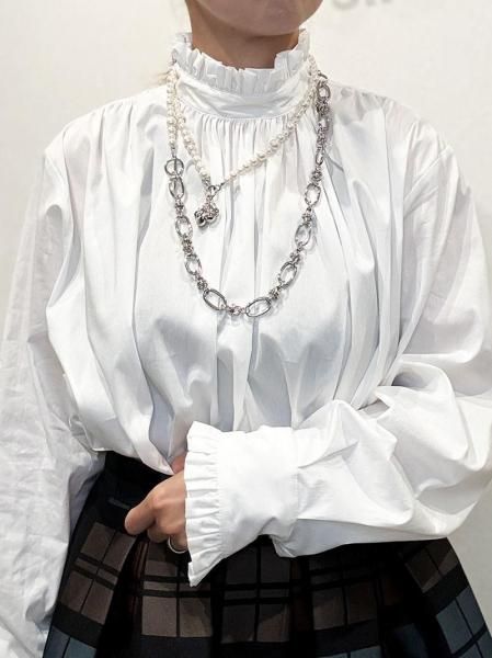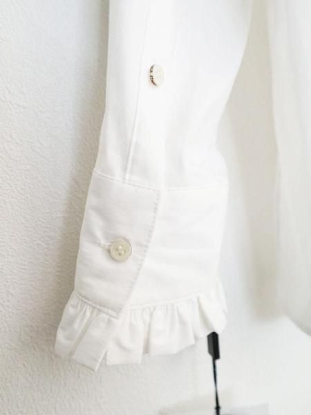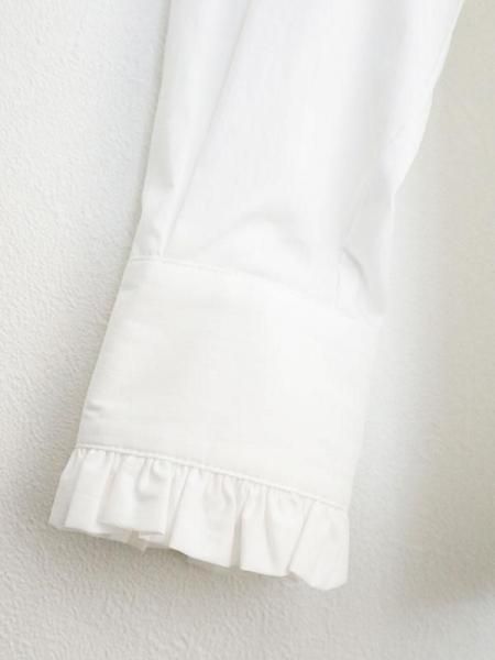 首元と袖にあしらったフリルが、クラシカルなムードを演出するギャザーシャツ。