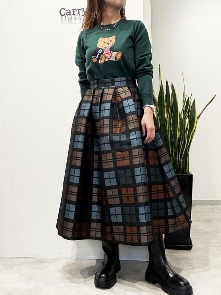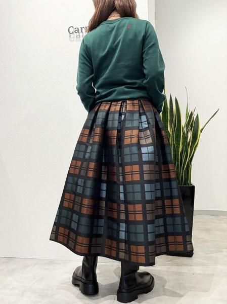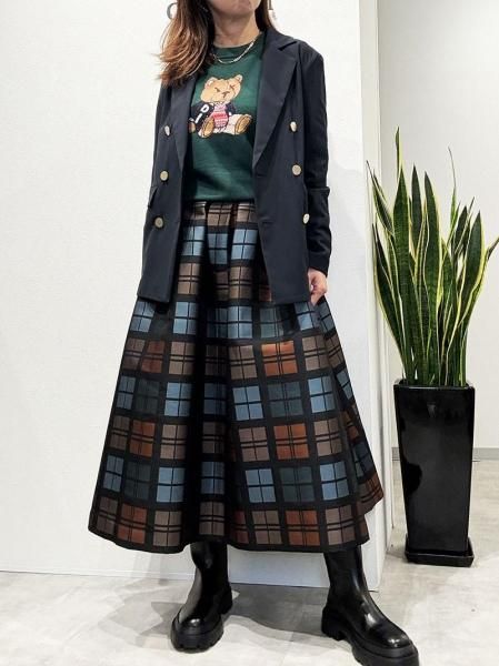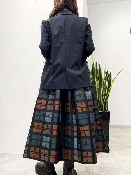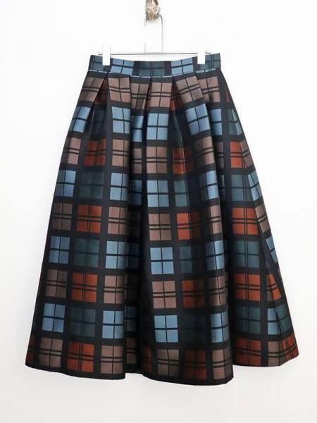 太めの糸を打ち込んで、ハリ感を出したチェックジャガードのフレアスカート。
