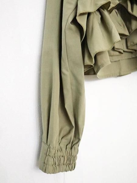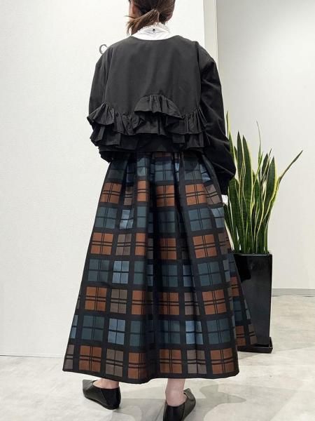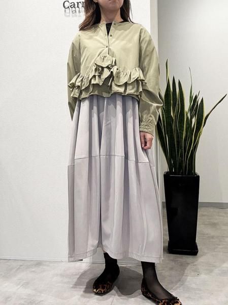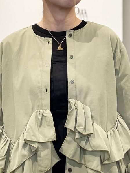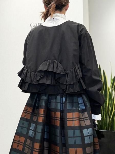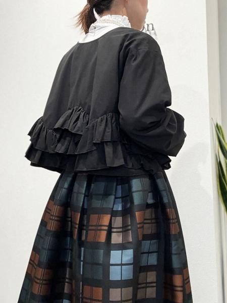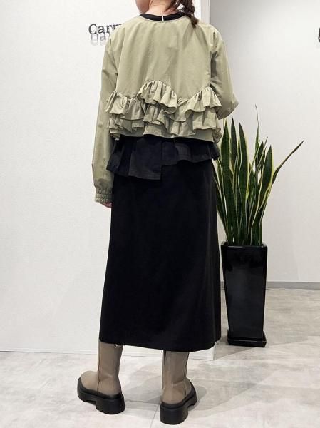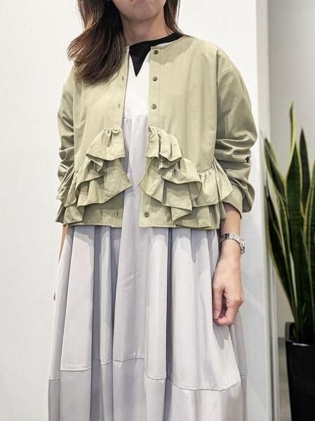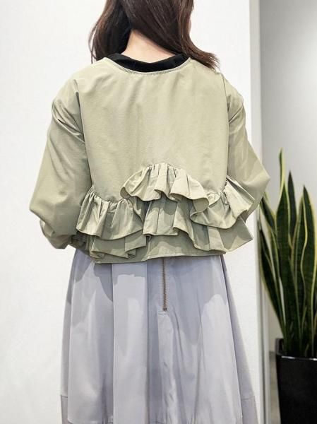 トレンドのショート丈が脚長効果を演出し、レイヤードでも軽やかに着こなせる洗練された一枚。ハリ感のある素材がフリルの立体感を美しく保ち、マットな質感が甘さを抑えて大人の印象に。前後リバーシブル仕様で着回し力も高く、デニムと合わせればカジュアルにも対応。視線を集めるフリルが気になる部分を自然にカバーしてくれるのも嬉しいポイントです。