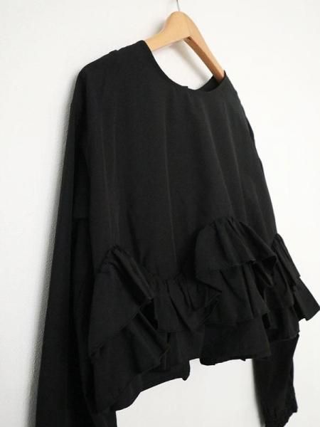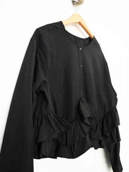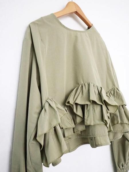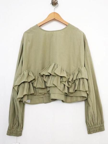 フェミニンな要素を程よく抑えた甘すぎない大人のフリルショートブラウス。