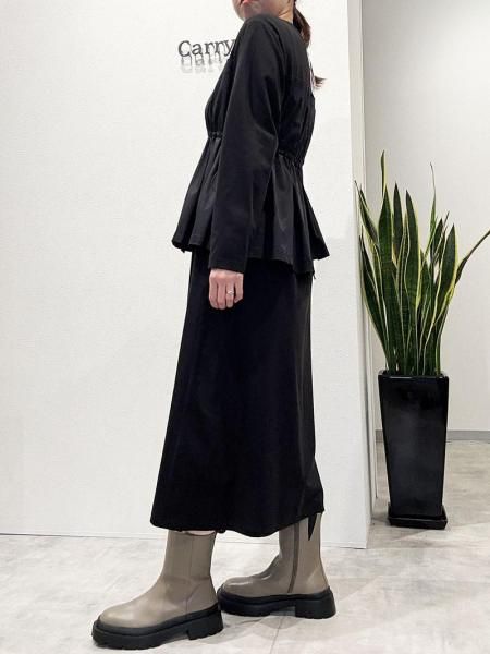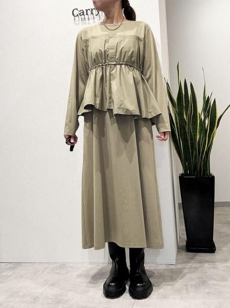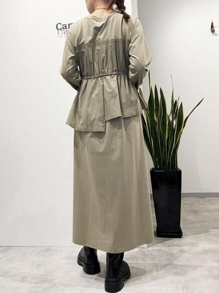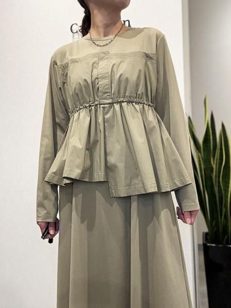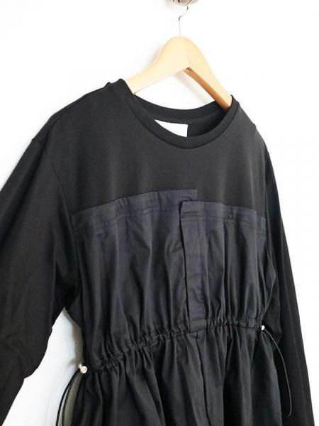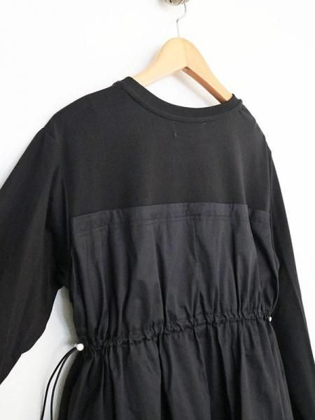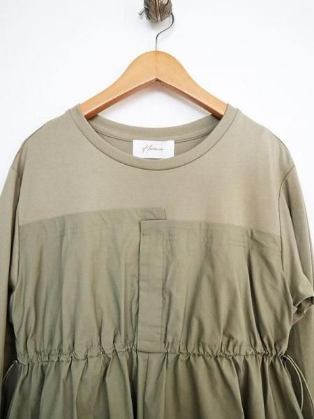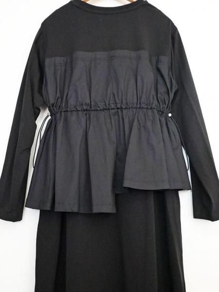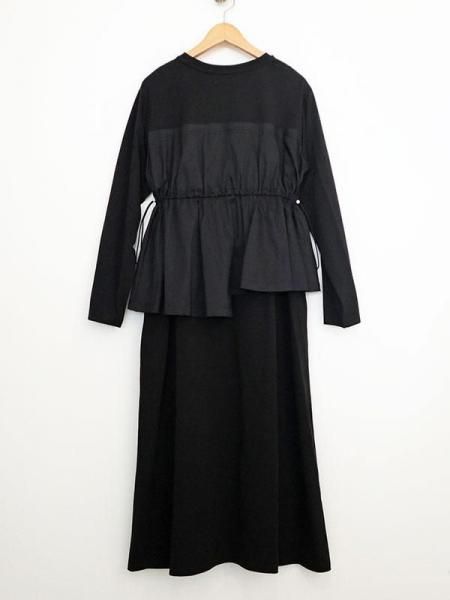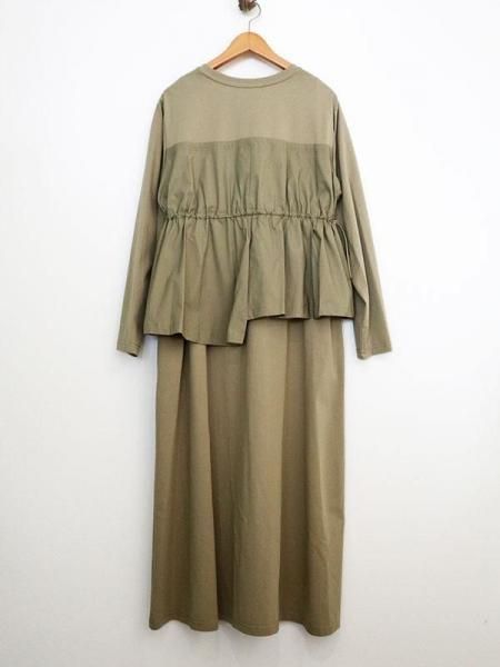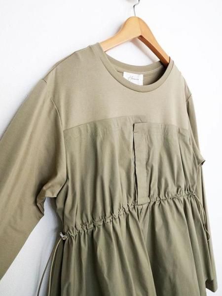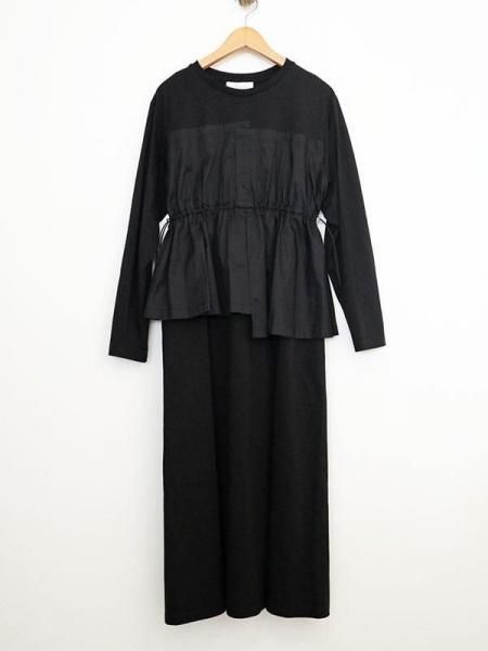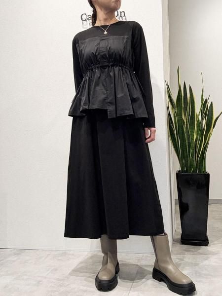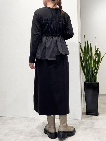 カットソーの気軽さと布帛の立体的な形が絶妙。上半身に伸縮性のあるカットソー生地。スカート部分はパリッとしたハリのある布帛生地と異素材の切り替えがさりげないアクセントに。柄パンツやデニムとのレイヤードスタイルも◎体のラインを拾わず大人にこそ似合う抜け感。忙しい日も、気負わず着用できます。