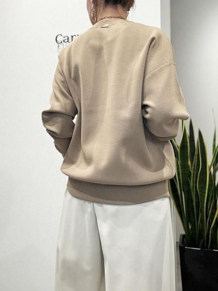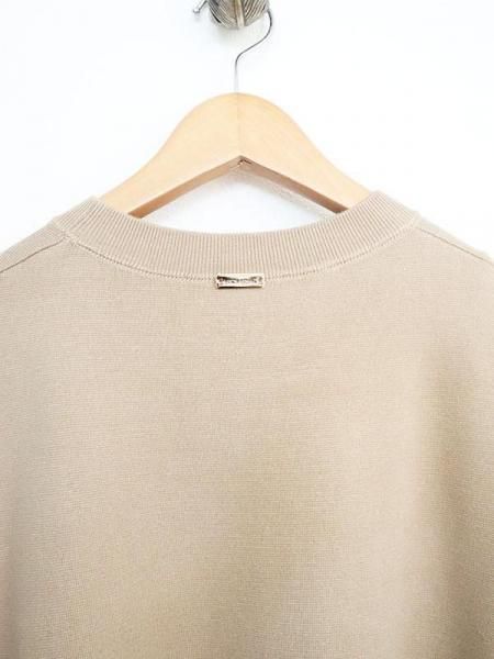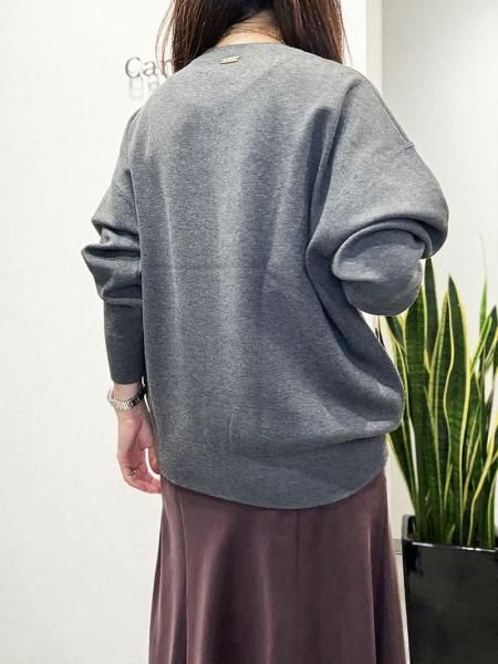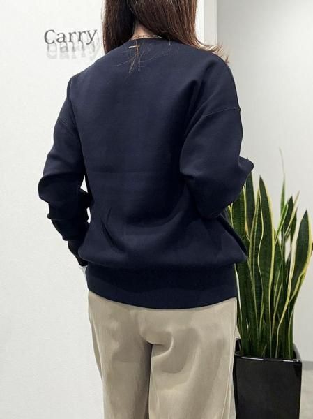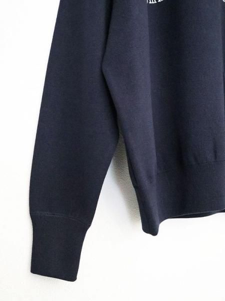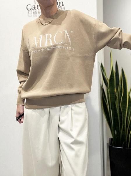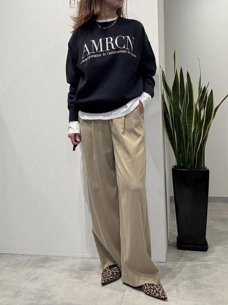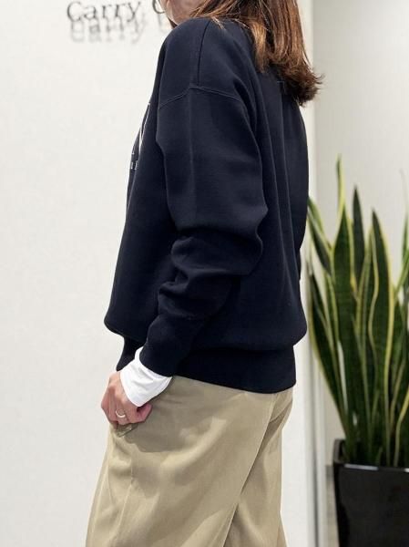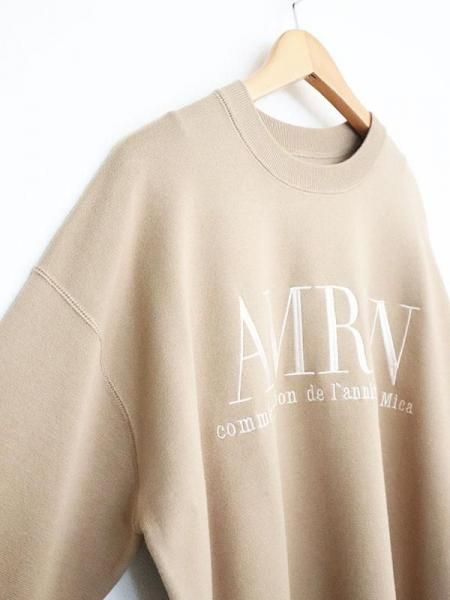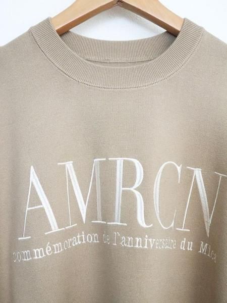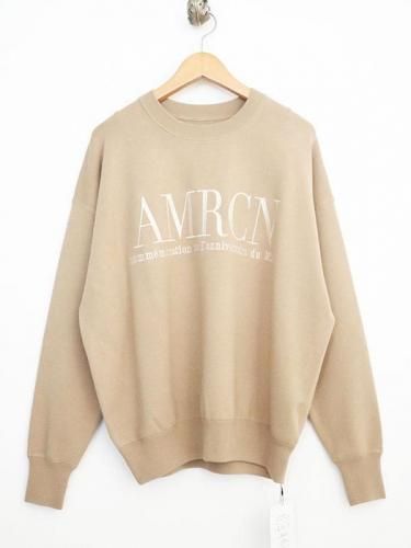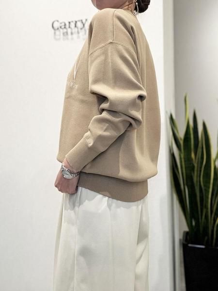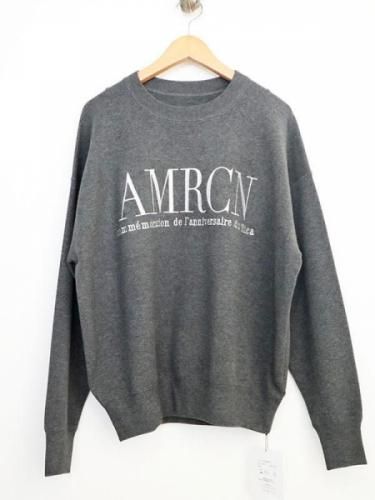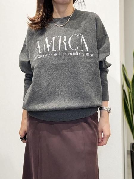 AMERICANAとコラボレーションしたニット。程よくゆとりのあるスクエアシルエットで、着心地が魅力のクルーネックニット。胸元に光沢のあるロゴ刺繍を施し、すっきりとした印象に仕上げました。カジュアルなロゴニットも、目面がきれいな素材を使用することで大人っぽく仕上げています。