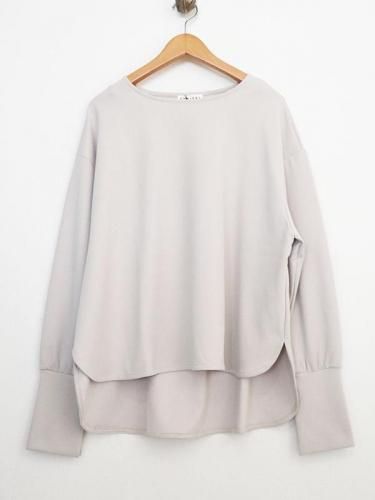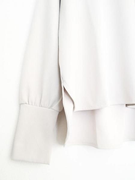 袖口のスリットがアクセントのプルオーバー。シンプルながらも袖口は折り返してオシャレに一工夫できます。さらったとしたタッチのジョーゼット生地で、着丈たっぷり着こなし要らずなトップスです。パンツ、スカート、コーデ問わず使える一枚です。
