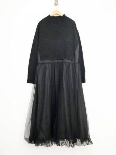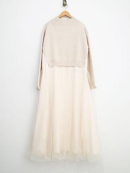 バルーンチュールのボリュームが可愛いニットドッキング一枚完結ワンピ♪