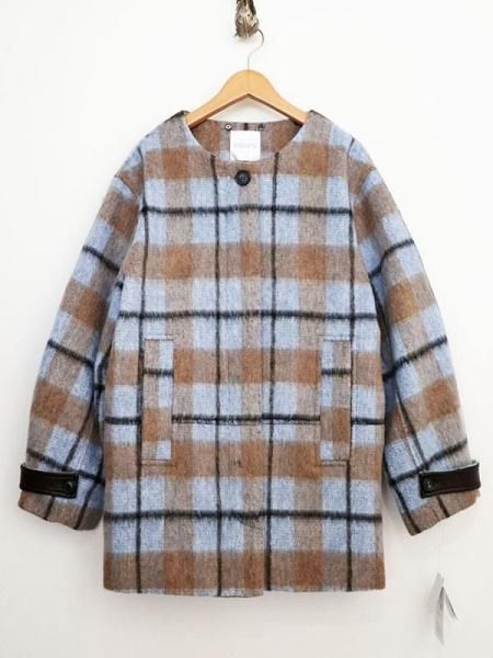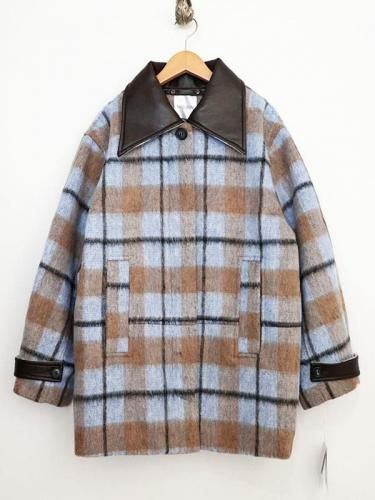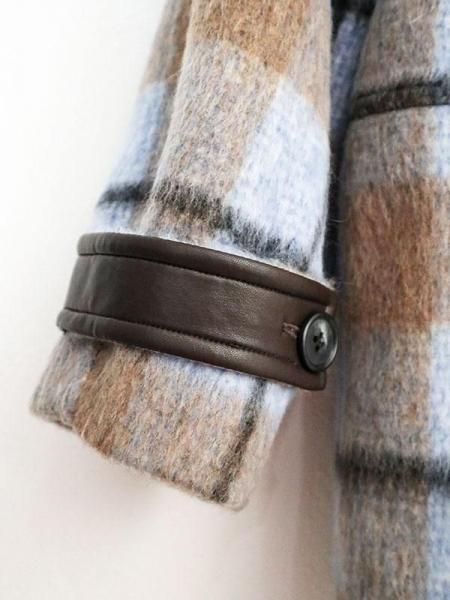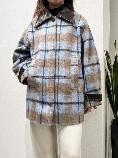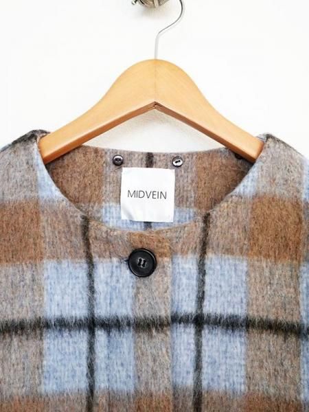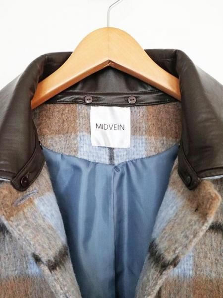 【MIDVEIN】レザーカラーシャギーチェックコート