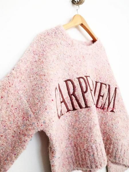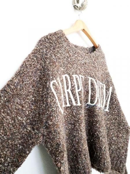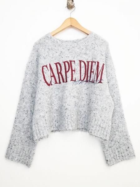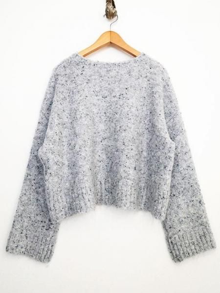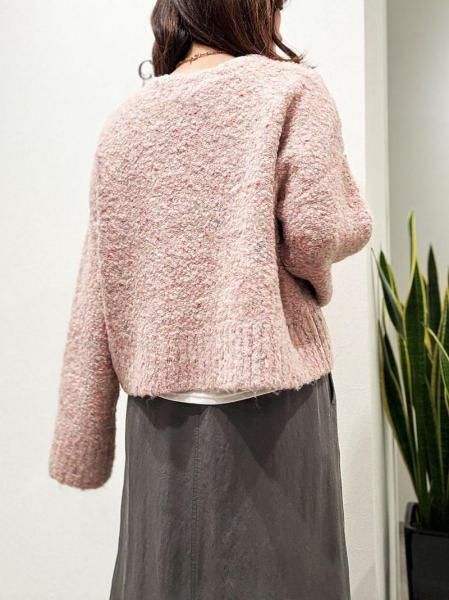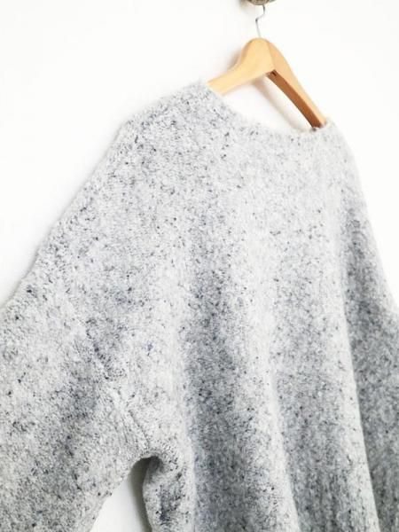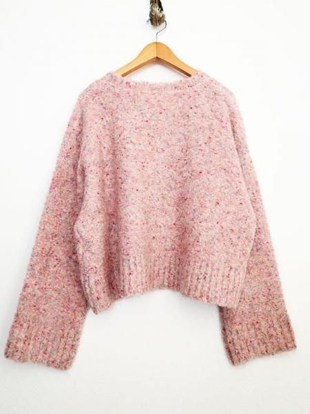 ぷくぷくとしたミックカラーのシャギーニットに、ロゴ刺繍をのせたウール混の見た目も着心地もホットなニットプルオーバー♪