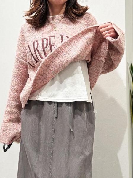 バランスのとりやすいワイドな身幅と長めの袖丈でややコンパクトな丈感です。ミックス糸のカラーとロゴ刺繍のカラーを揃えており、カラー数が多いわりに全体がすっきりまとまり、コーデ全体がスタイリッシュに仕上がるセンス良いデザイン♪