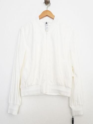 テロンと落ち感のある極薄手のストレッチナイロン素材で、体のラインを華奢に見せてくれるのも魅力です。ショート丈なので、ボリュームのあるパンツやロングスカートとの相性は抜群。カジュアルなブルゾンながら、大人フェミニンなコーディネートを叶えてくれる一枚です。夏でもTシャツの上から羽織るだけでサマになります。