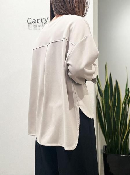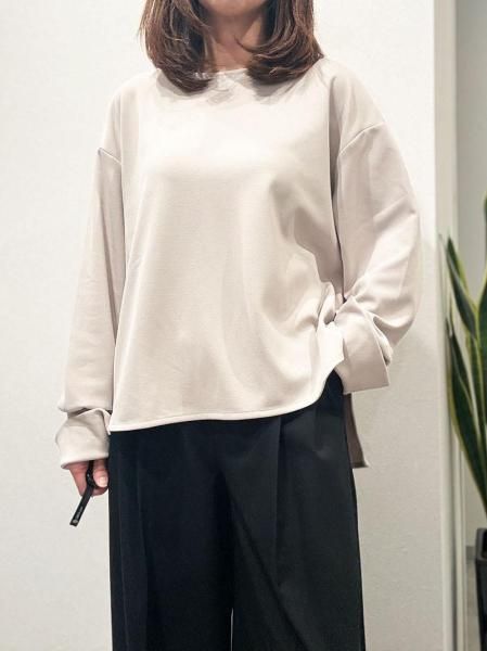 袖口のスリットがアクセントのプルオーバー。シンプルながらも袖口は折り返してオシャレに一工夫できます。さらったとしたタッチのジョーゼット生地で、着丈たっぷり着こなし要らずなトップスです。パンツ、スカート、コーデ問わず使える一枚です。