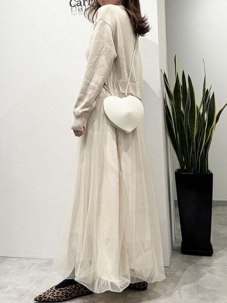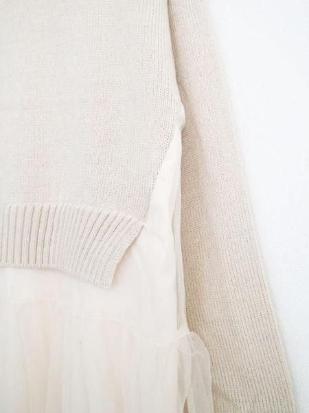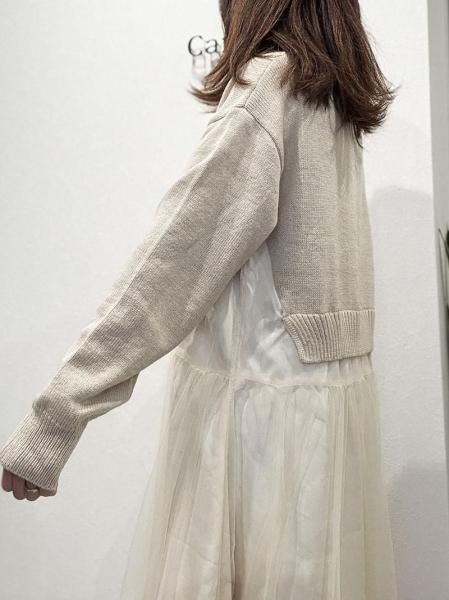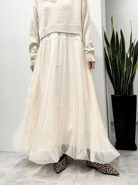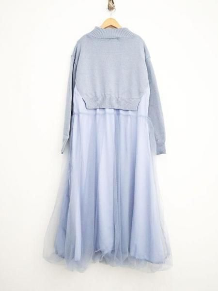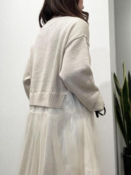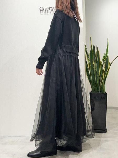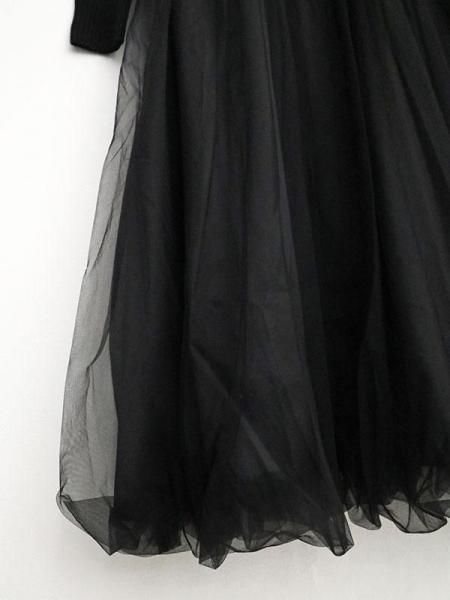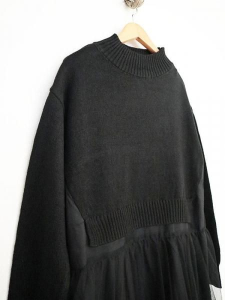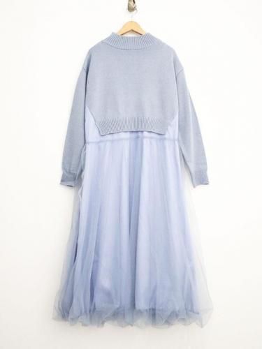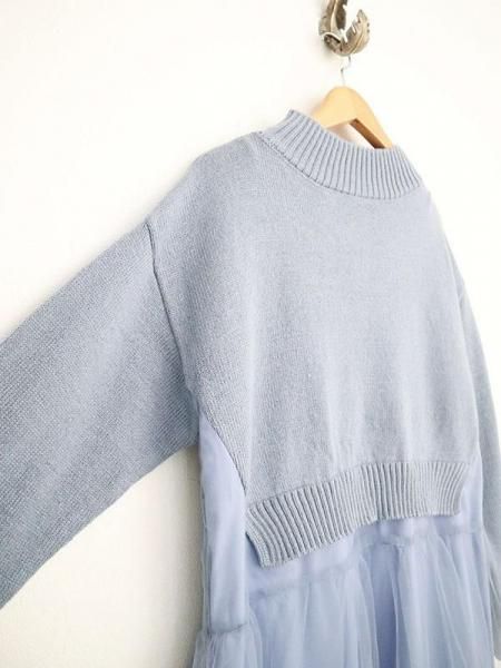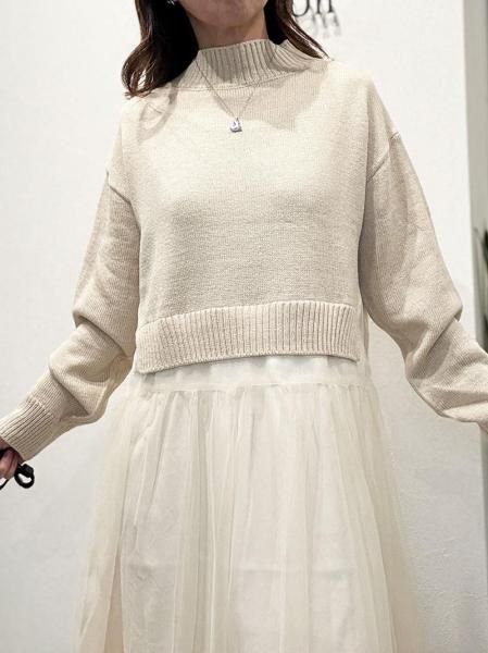 バルーンチュールのボリュームが可愛いニットドッキング一枚完結ワンピ♪