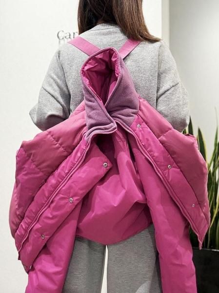 スタンドネックやポケットの内側にフリース生地を使用しており、首元や手先をしっかり温めてくれます。デイリーで活躍しやすい、ショート丈&ワイドな身幅で、スポーティーになり過ぎずファッショナブルに仕上がるデザイン。ポケット口にファスナー付き、袖口リブ付き、裾ドロストで、細部からしっかり冷気をシャットアウト!脱いだ際にリュックのようにそのまま背負える、ゴムベルト内臓で、便利&可愛い!鮮やかなフューシャピンク、少しパープル味のあるブルー、ベーシックなブラック、3色のセレクトです。