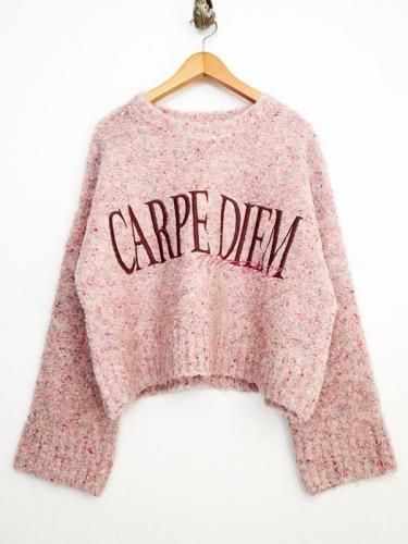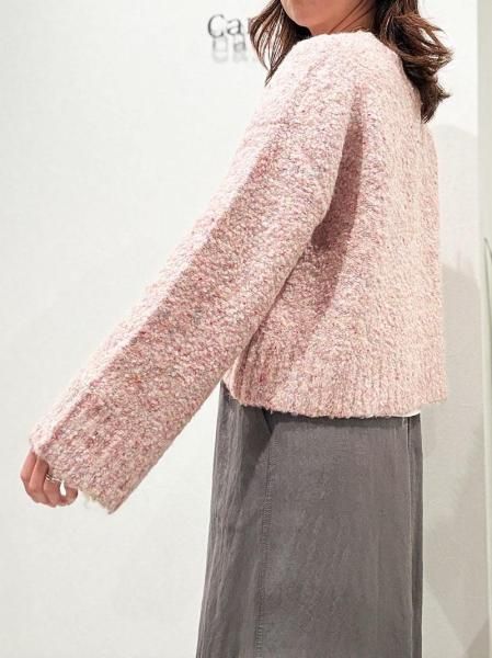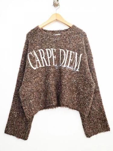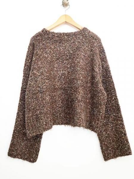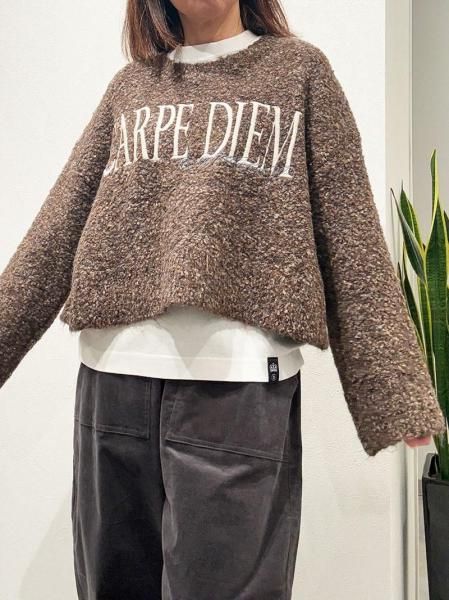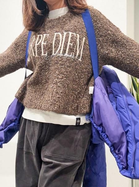 ぷくぷくとしたミックカラーのシャギーニットに、ロゴ刺繍をのせたウール混の見た目も着心地もホットなニットプルオーバー♪