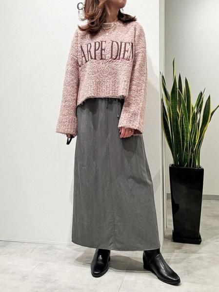 バランスのとりやすいワイドな身幅と長めの袖丈でややコンパクトな丈感です。ミックス糸のカラーとロゴ刺繍のカラーを揃えており、カラー数が多いわりに全体がすっきりまとまり、コーデ全体がスタイリッシュに仕上がるセンス良いデザイン♪