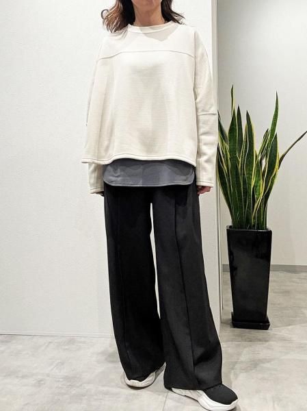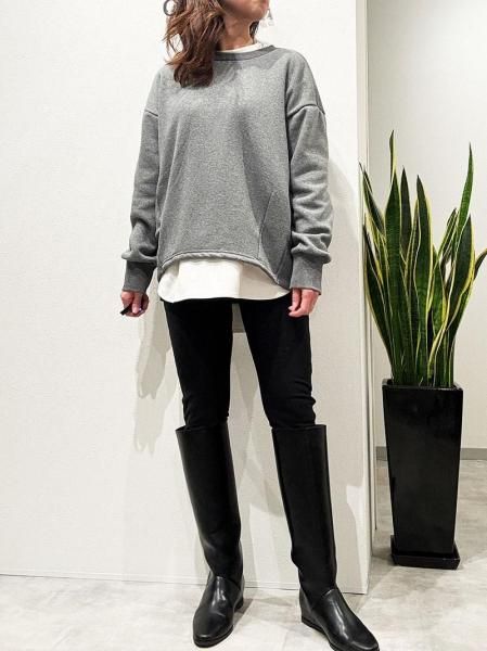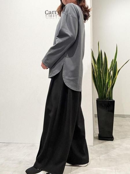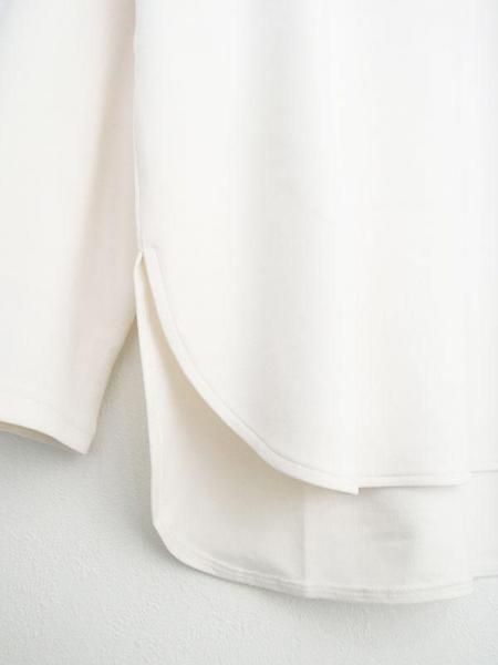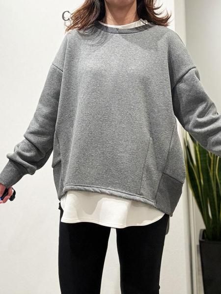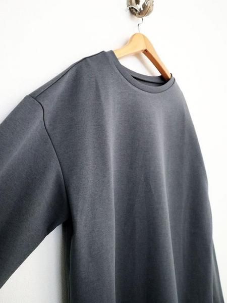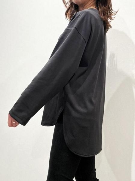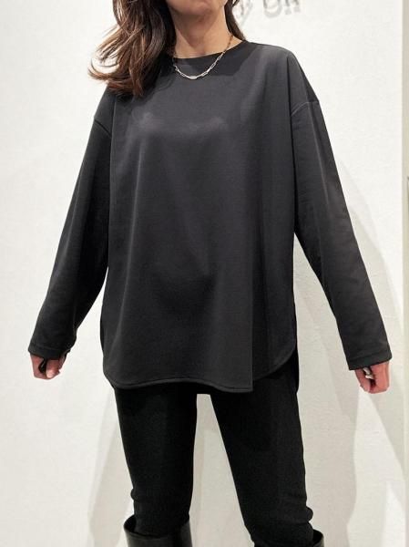 プルオーバーとして一枚でも、ニット下のレイヤードコーデにも、とにかくコーデ力のあるシンプルデザインの、ロンティー以上、スウェット未満なトップスです。ソフトでふっくらとした表面とメッシュ構造になった裏面、ストレッチ抜群で着心地はとってもリラックス!ラウンドしたヘムラインがさり気なくアクセントに!