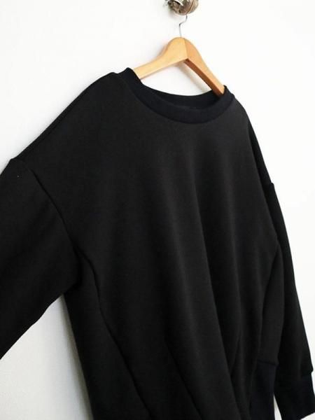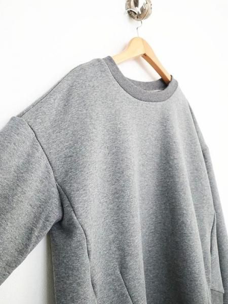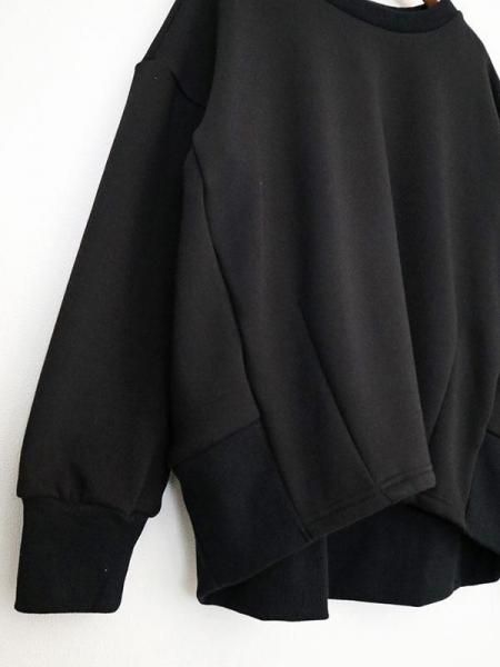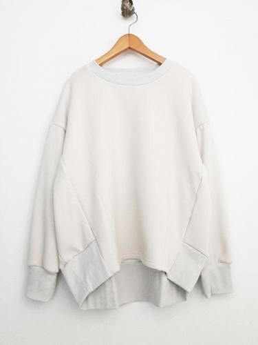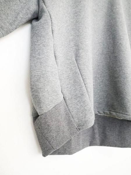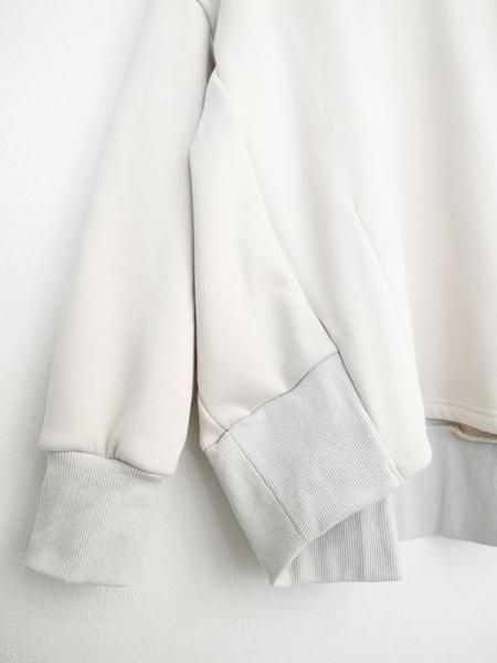 クリアな表面感で、裏起毛とは思えぬ綺麗目な表情が、カジュアルダウンしすぎずオンオフ問わず使いやすい冬の頼れる一枚です。前振りのデザインで少し幅の広い裾リブコクーンシルエットで遊んだデザイン。ヒップもしっかり包み込んでくれてポカポカです。